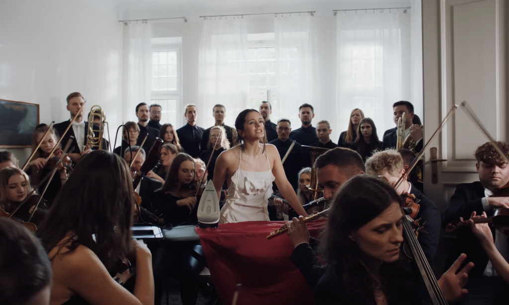 Lejos de los ritmos urbanos que la consagraron, Berghain se construye sobre una arquitectura sonora majestuosa: cuerdas, coros y percusiones de intensidad casi litúrgica. La producción —que involucra a la London Symphony Orchestra— articula un crescendo que pasa de lo etéreo a lo abrumador, con una precisión técnica que impresiona. Rosalía canta en tres idiomas —alemán, español e inglés— como quien invoca distintas dimensiones de sí misma.