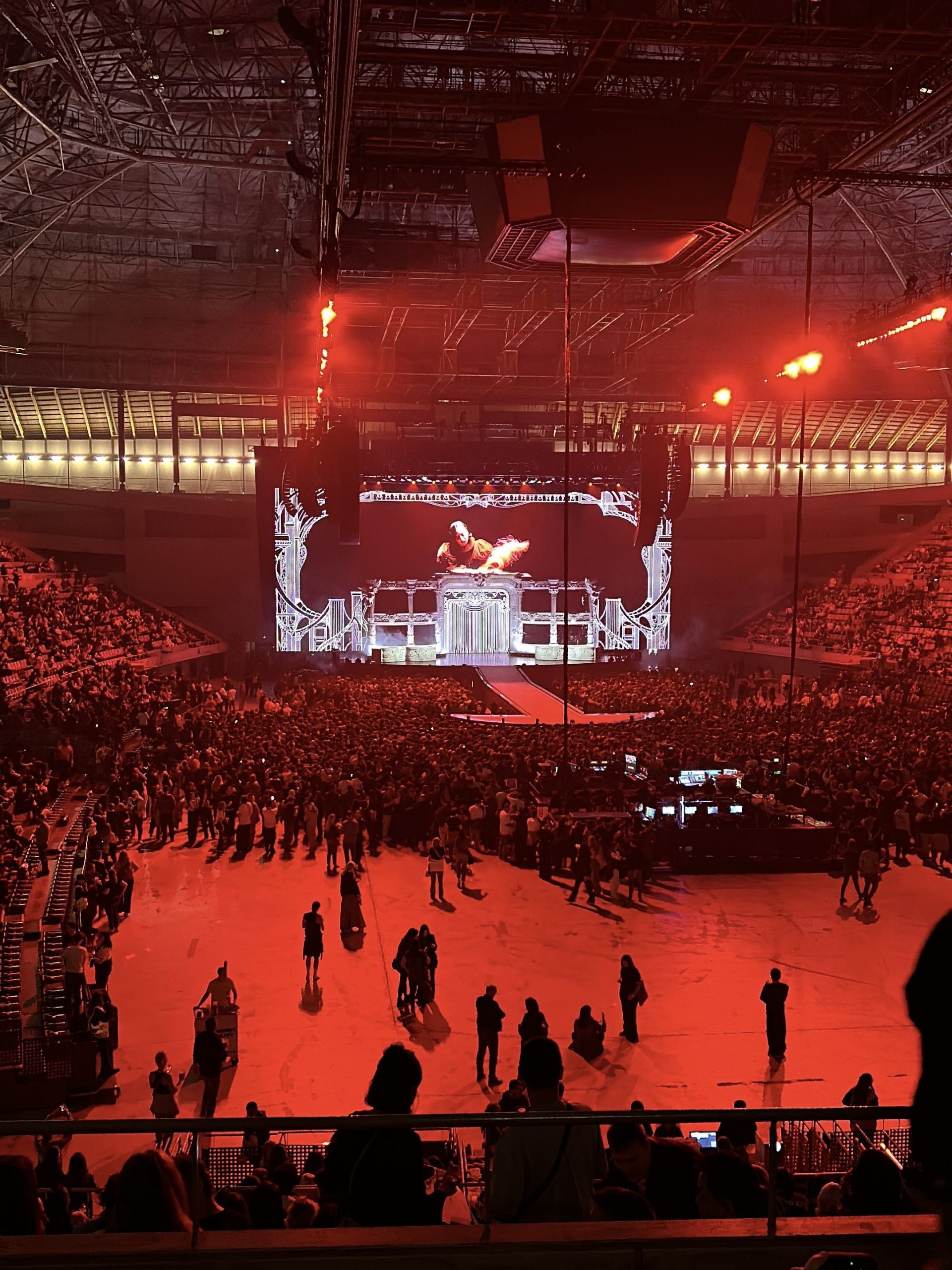 Desde los primeros compases, el escenario se transformó en una catedral del exceso: luces rojas, estructuras góticas, fuego, humo y un vestuario que cambiaba al ritmo de cada beat. Gaga emergió de un telón que parecía un organismo vivo y, acompañada por un cuerpo de baile impecable, enlazó clásicos como “Bad Romance”, “Born This Way” y “Poker Face” con temas de su nuevo álbum Mayhem. El resultado fue un recorrido por toda su trayectoria, pero reinterpretado desde una estética más oscura y cinematográfica.